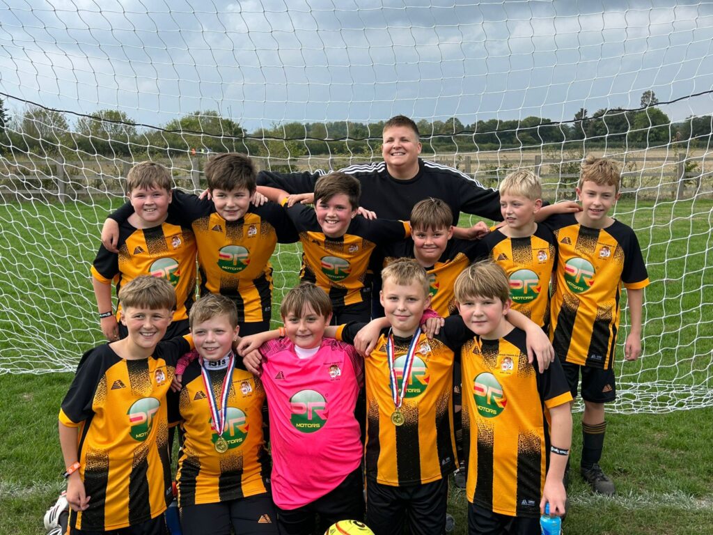 Theale Tigers Under 11s Orange Team, with their Coach, proudly wearing their brand new kit for the 2025-2026 season.